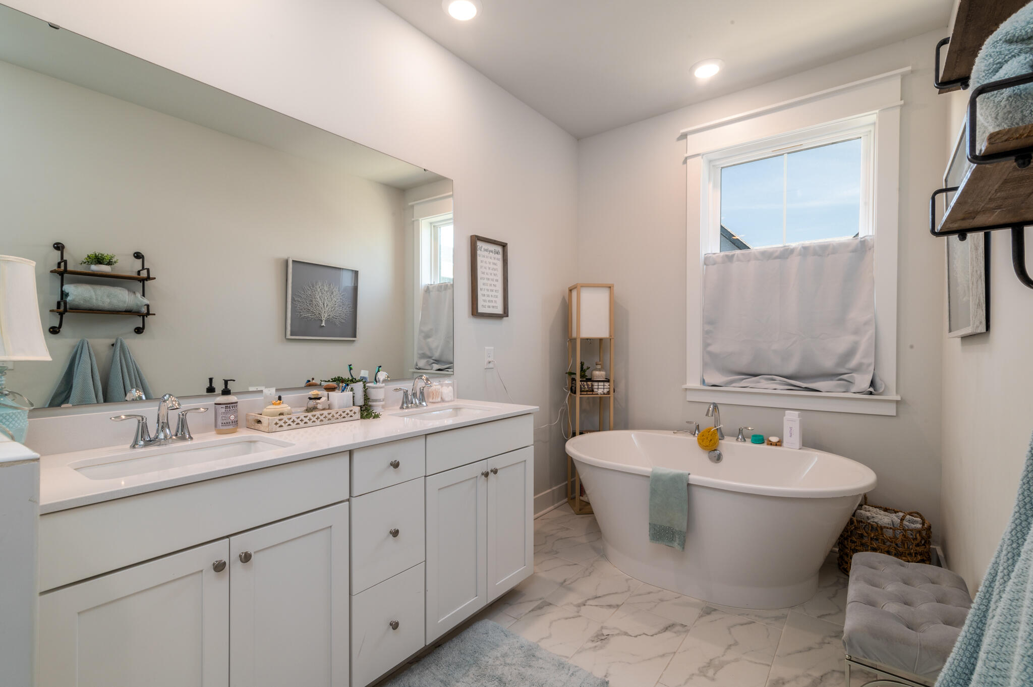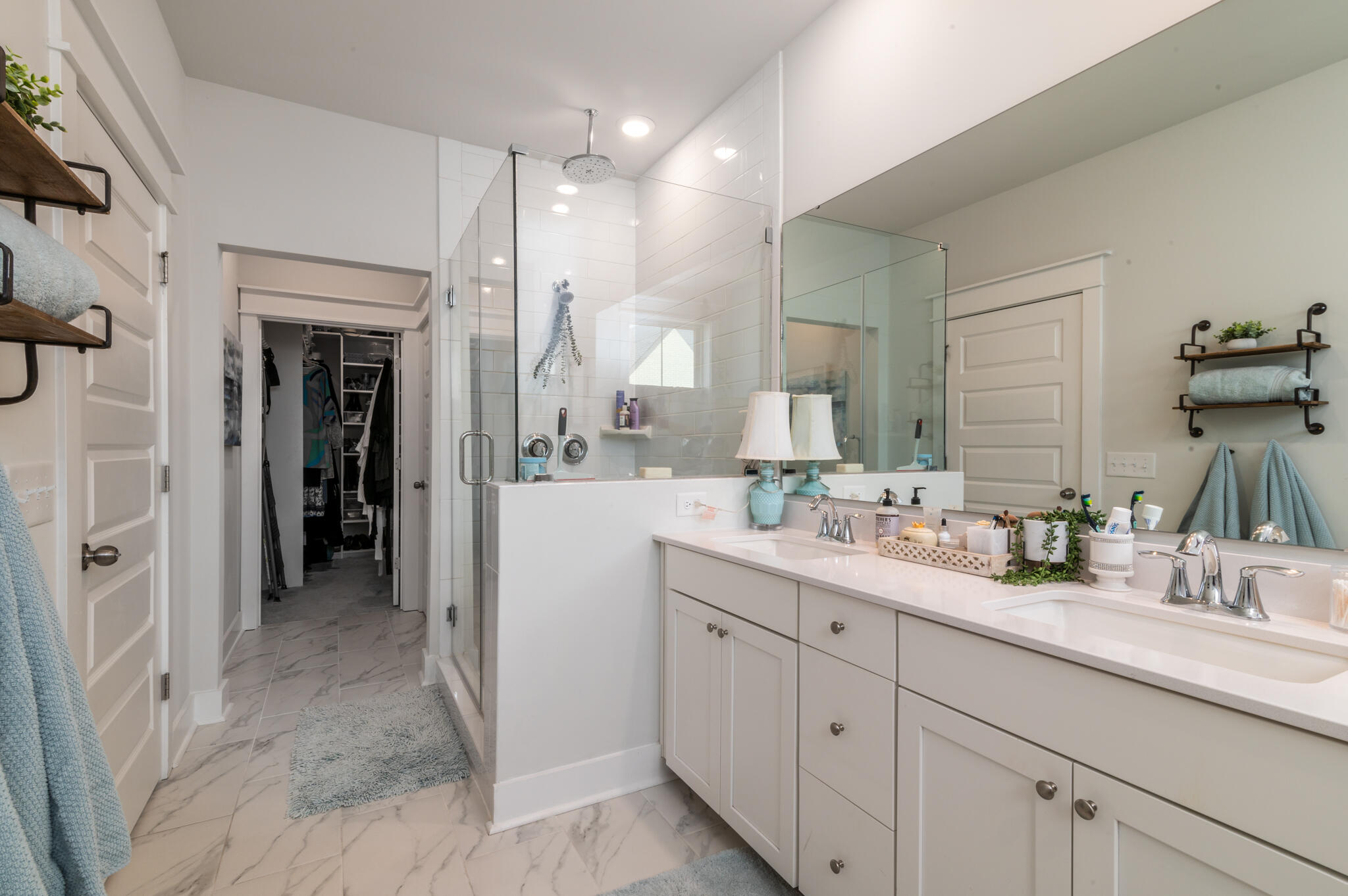 Upon entering the primary bathroom you will feel as though you have entered a spa, as you discover the deep soaking tub and large tiled shower with dual shower heads, including a large rainhead fixture. The oversized walk-in closet is a dream with custom built shelving and multiple racks for clothing and storage. The additional 2 bedrooms are at the end of the hall and share a lovely, full sized bathroom. You will find your laundry room on this level as well, complete with beautiful white cabinets. If walking up and down the 3 floors exhaust you (or if you no longer want to get your steps in) there are 3 huge closets that provide the space for an elevator, if you choose to want to install one.