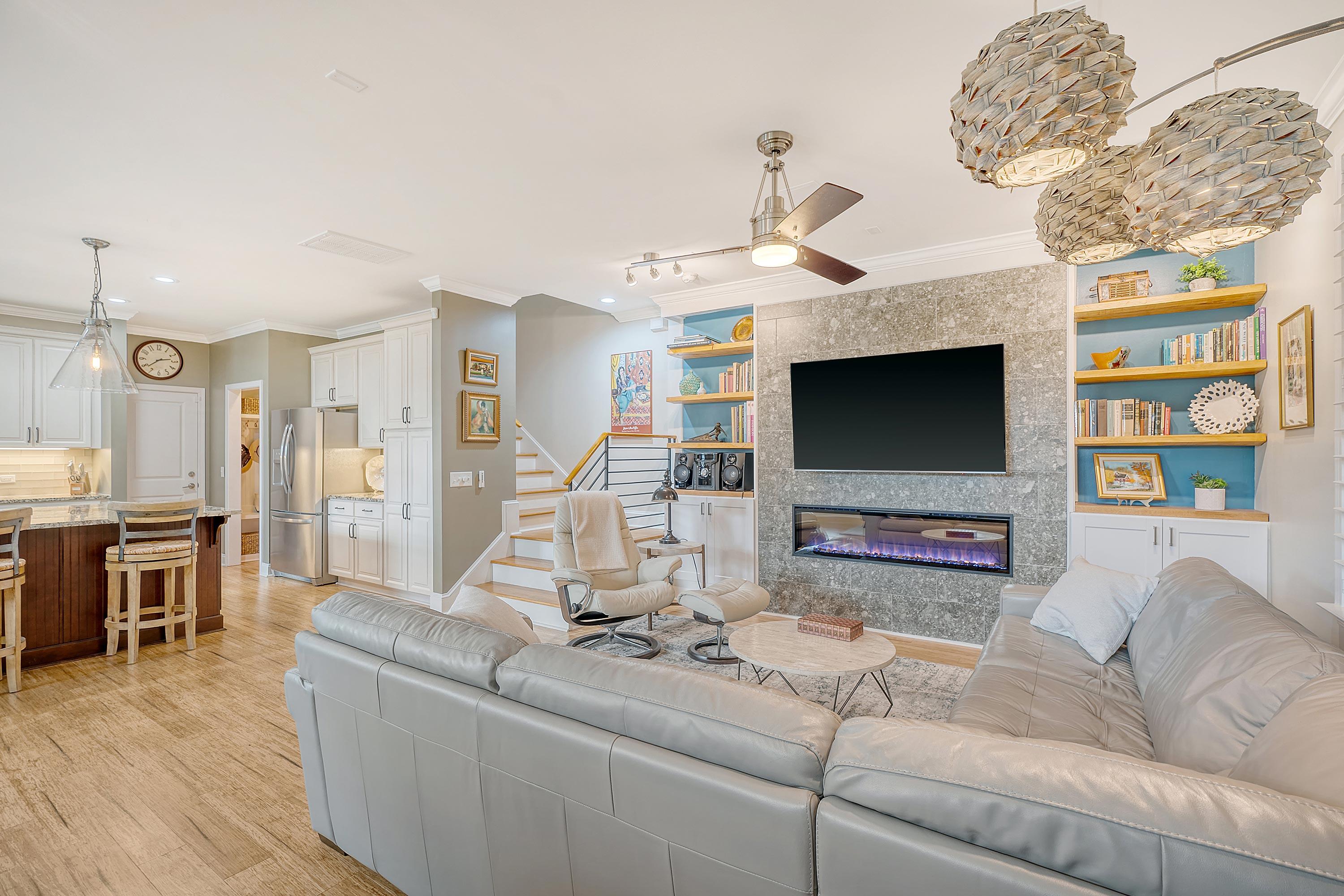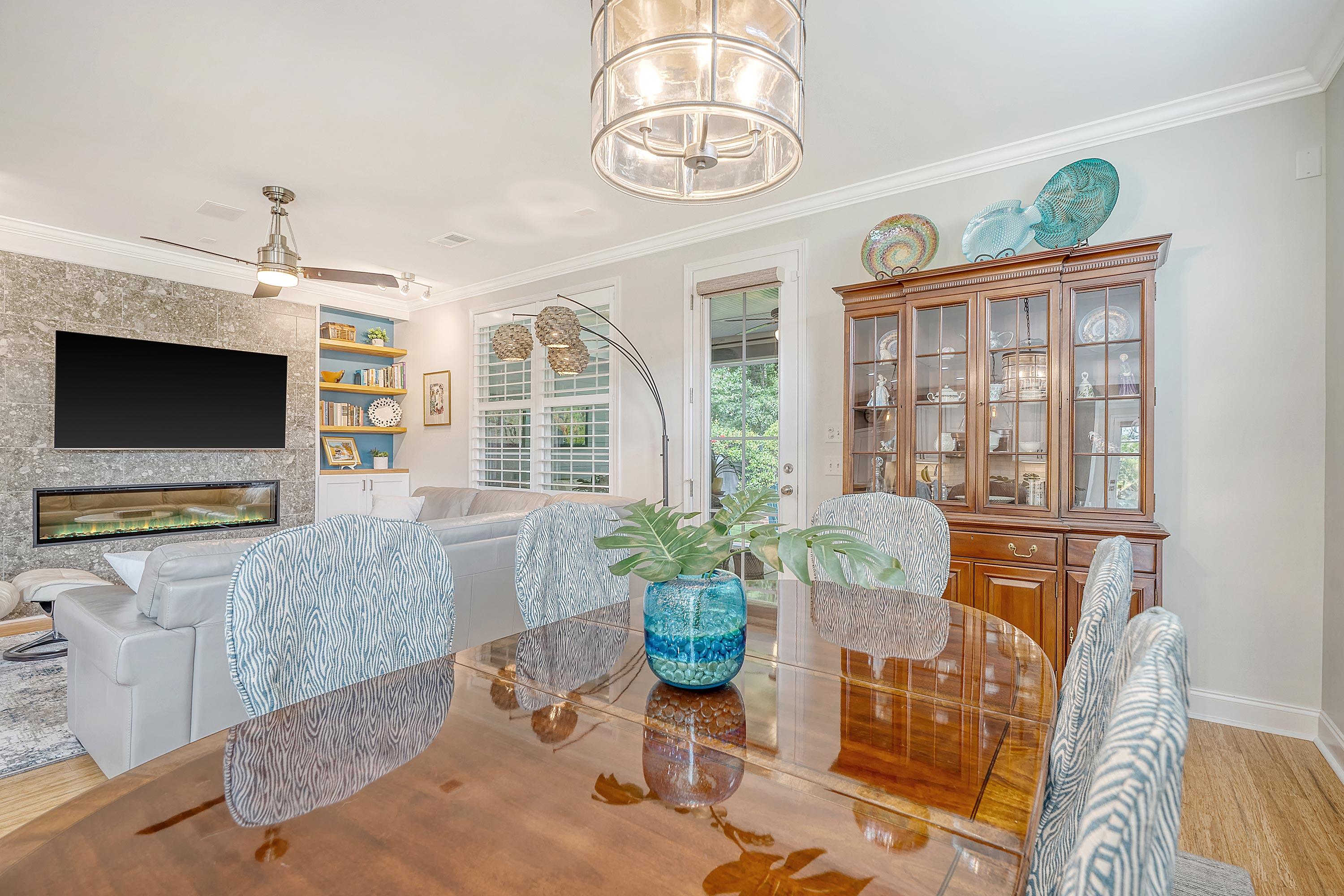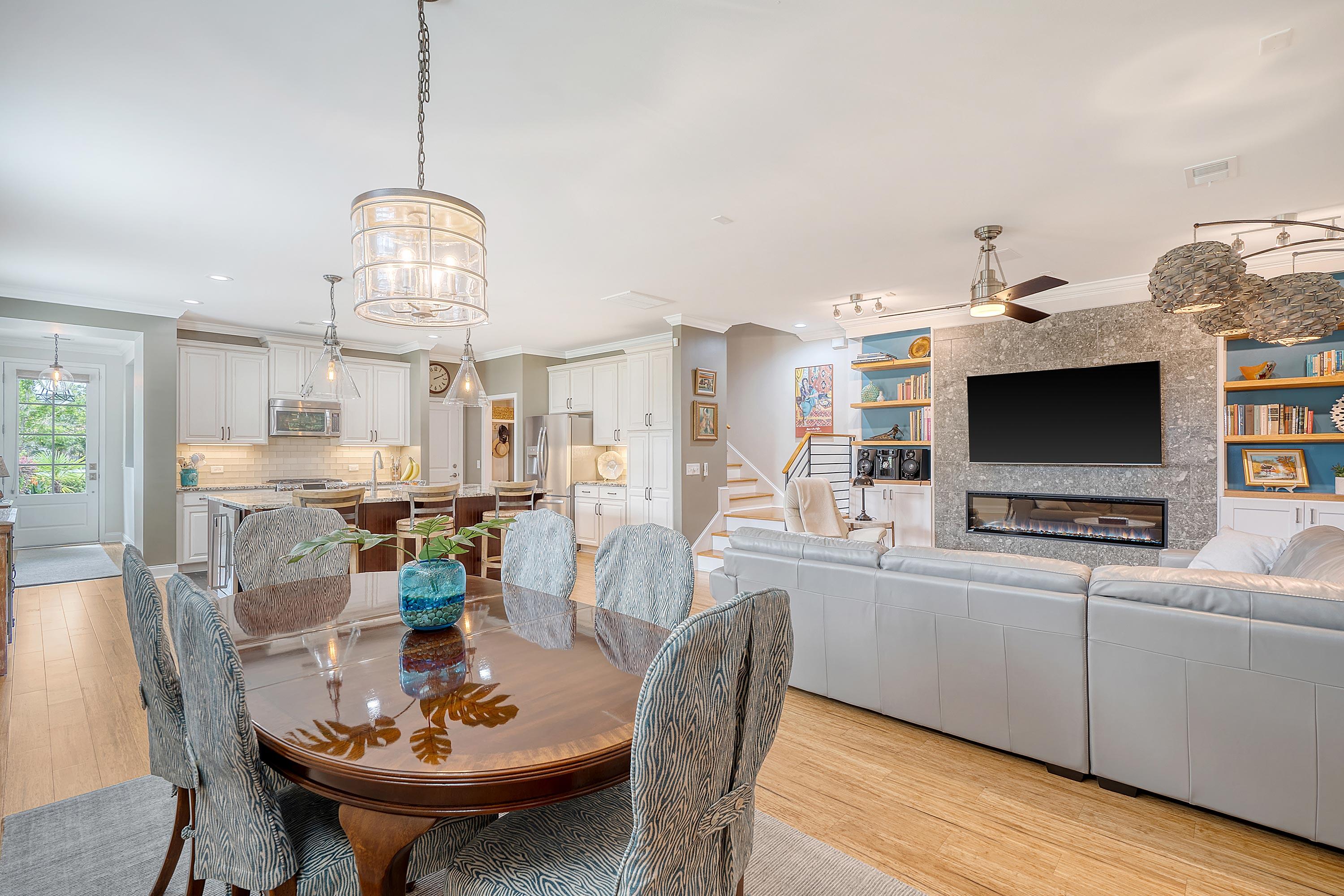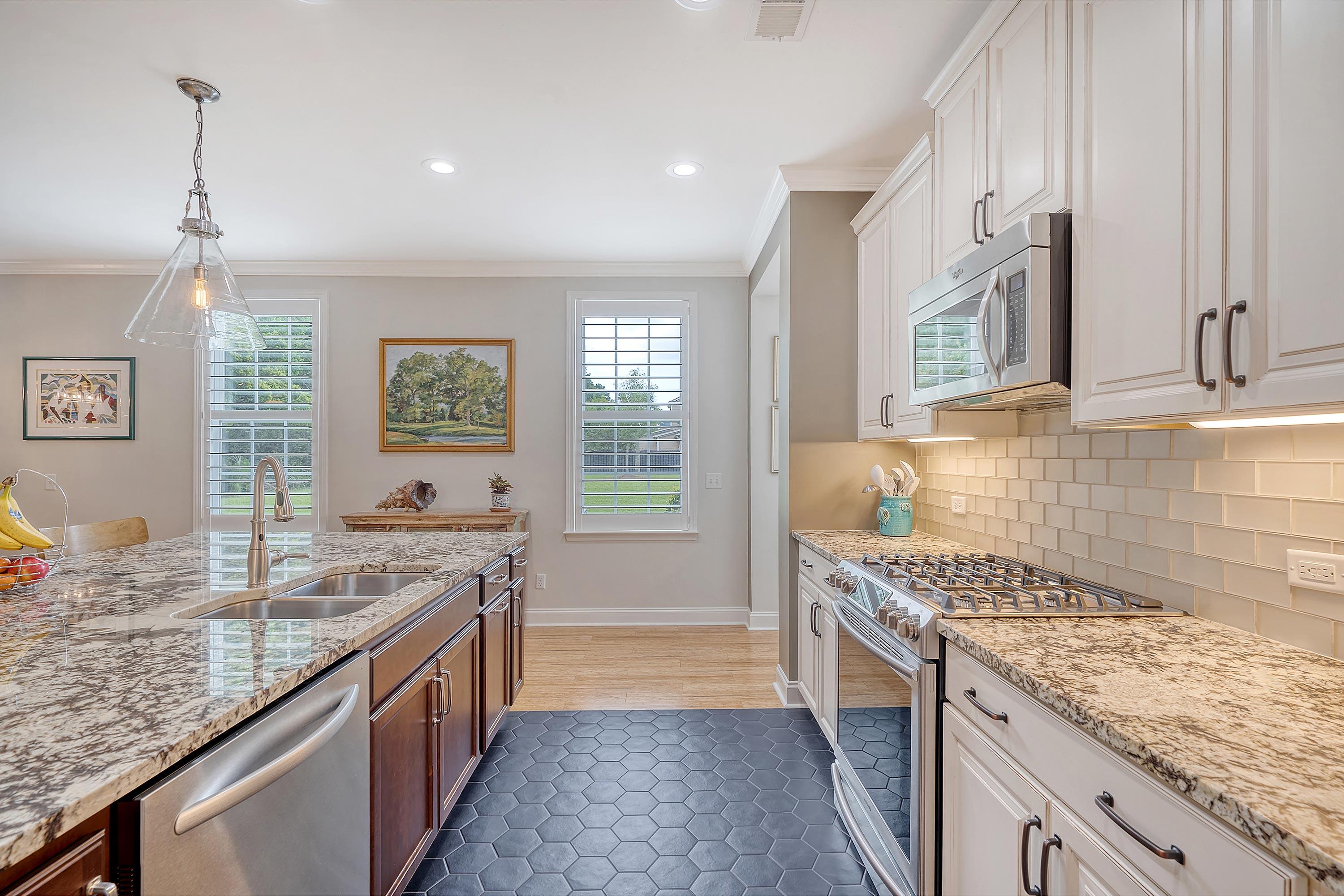 Welcome to this stunning end-unit townhome in the desirable Dunes West community, located just outside the gated area. This home offers a perfect blend of privacy and convenience, backing to serene woods and situated next to a wide open space with more across the street. The location is unbeatable, with a short walk to groceries, restaurants, and shops.Step inside to an open-concept living space, flooded with natural light from the many windows adorned with wide-slat plantation shutters. The entertainment area is a showstopper, featuring floating shelves, custom cabinetry, a Dimplex electric fireplace, and a beautiful tiled backdrop, perfect for your TV setup. The kitchen is a chef's dream, boasting a huge granite island, new tile flooring and backsplash, and modern finishthroughout.