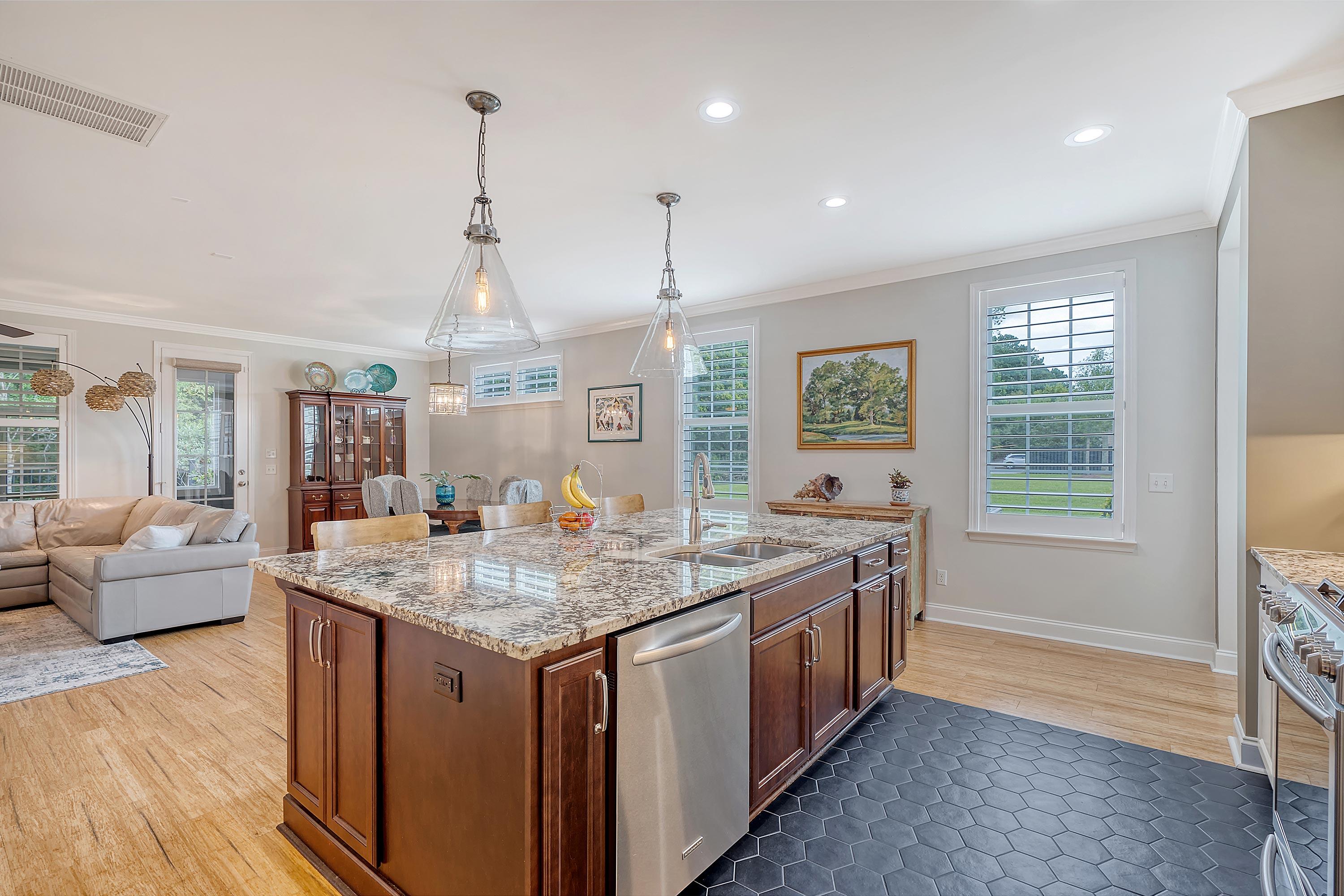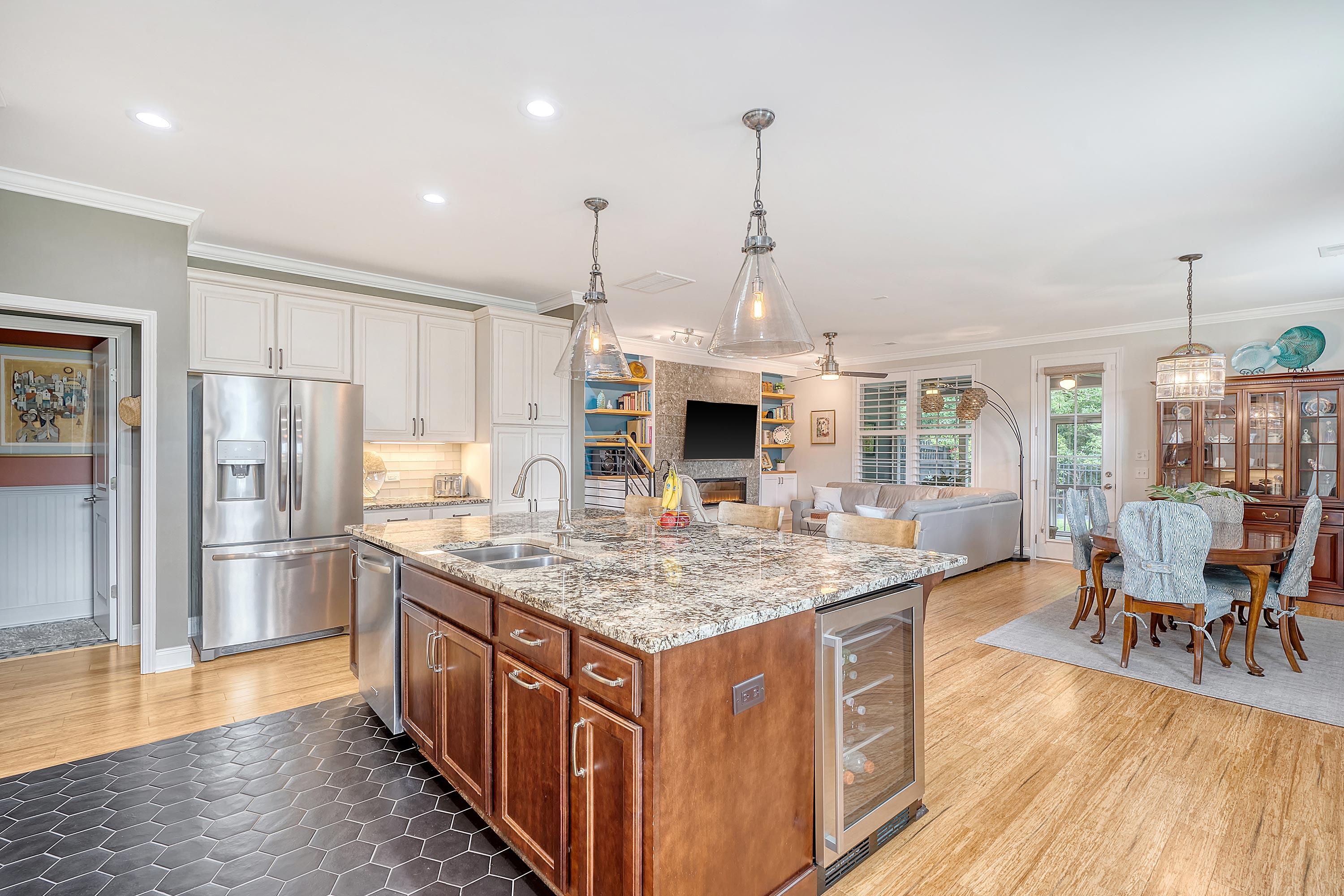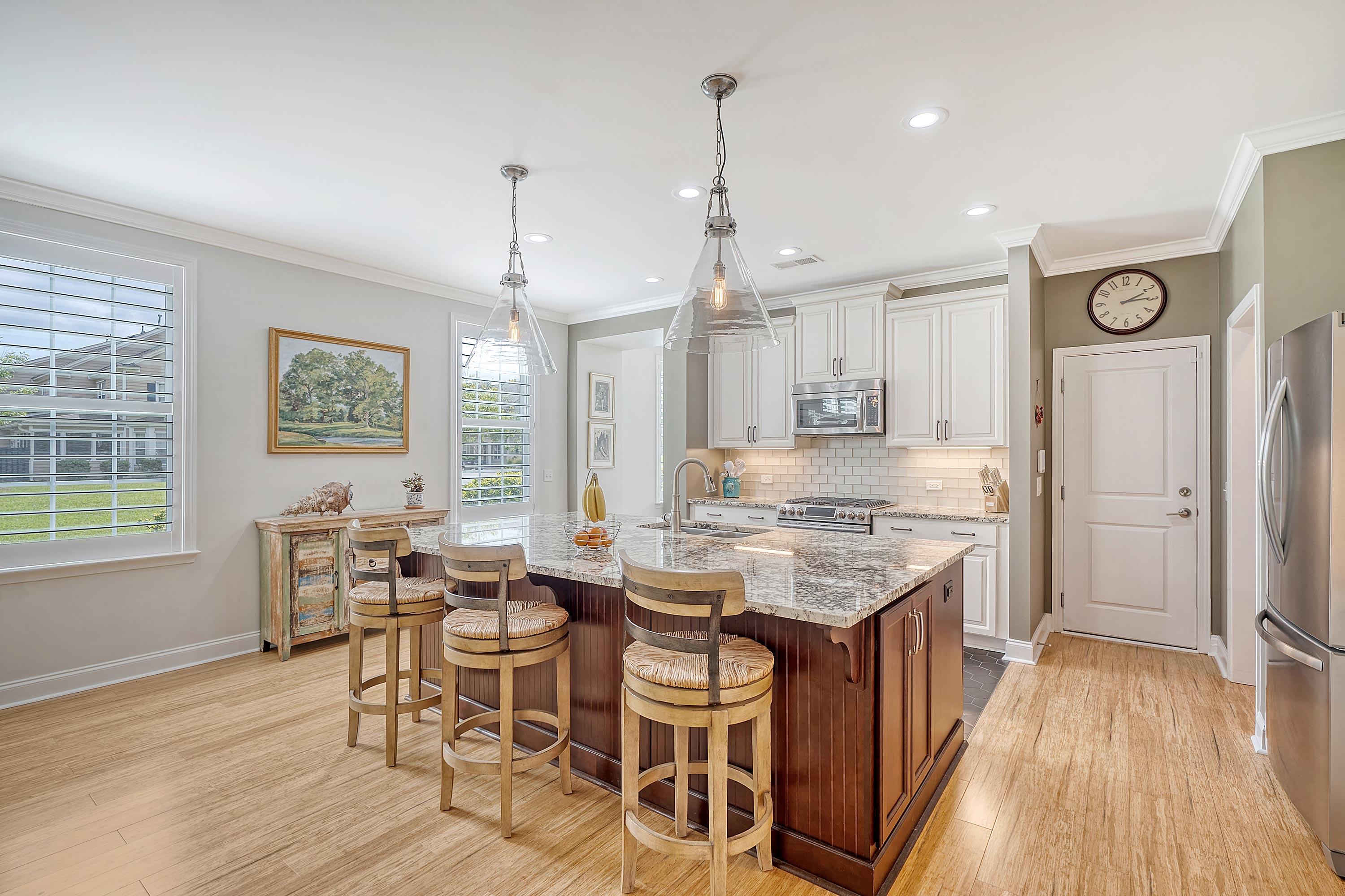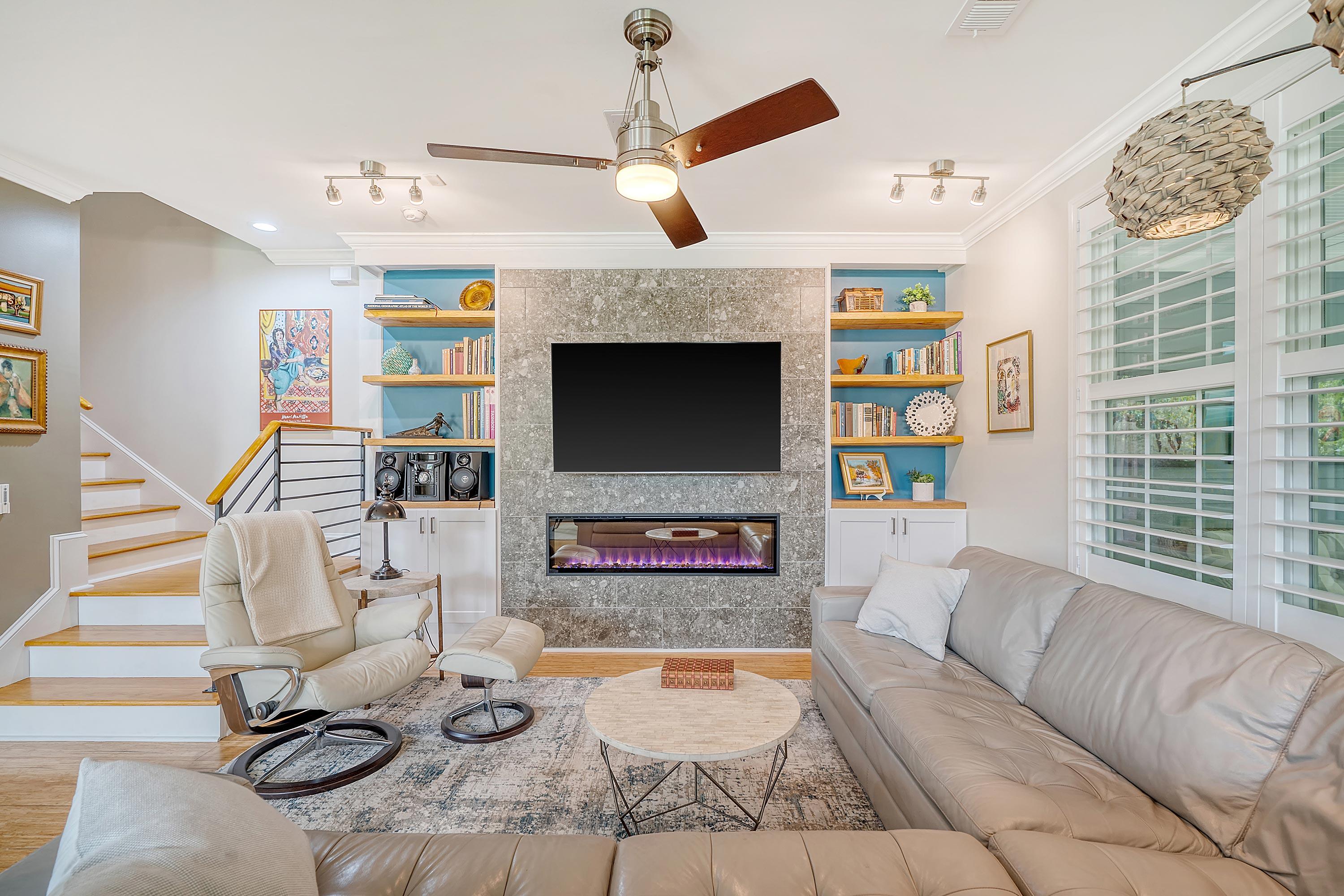Welcome to this stunning end-unit townhome in the desirable Dunes West community, located just outside the gated area. This home offers a perfect blend of privacy and convenience, backing to serene woods and situated next to a wide open space with more across the street. The location is unbeatable, with a short walk to groceries, restaurants, and shops.Step inside to an open-concept living space, flooded with natural light from the many windows adorned with wide-slat plantation shutters. The entertainment area is a showstopper, featuring floating shelves, custom cabinetry, a Dimplex electric fireplace, and a beautiful tiled backdrop, perfect for your TV setup. The kitchen is a chef's dream, boasting a huge granite island, new tile flooring and backsplash, and modern finishthroughout.